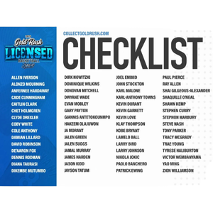 Get set for tip-off and add some extra excitement to the 2025/26 season with the 2025 Gold Rush Autographed Basketball Series! Find signatures from today's most thrilling hoopers, plus fan-favorite players and hardcourt legends, in an extraordinary 50-name checklist that spans every generation! Every fan will have something to cheer for with all 30 NBA teams represented in this series! All autographs come backed by authentication from an industry professional such as Beckett, Fanatics, JSA, Leaf, Panini, or PSA.